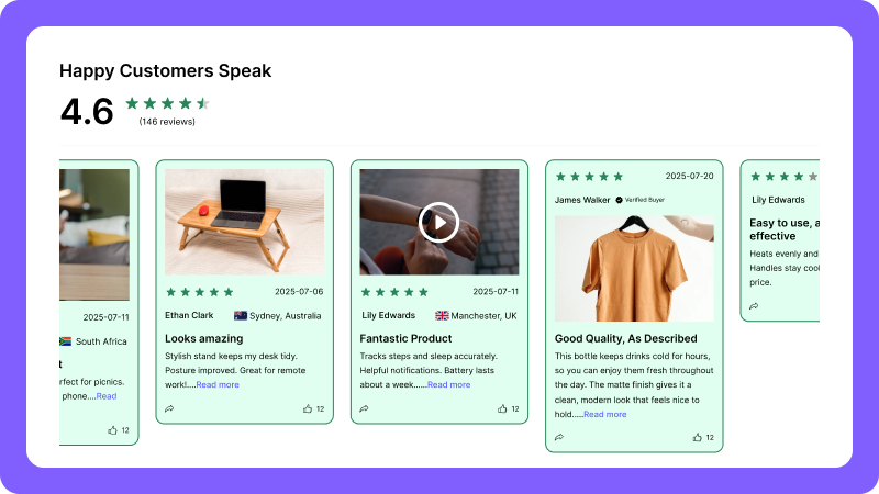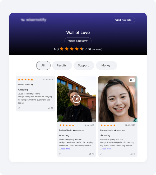 Yes, WiserReview lets your customers submit both photo and video reviews. These visuals boost trust and increase conversion rates.