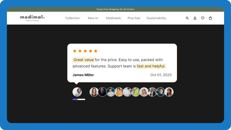 Highlight your best reviews right where shoppers decide, creating immediate trust.