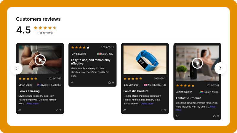 Display reviews anywhere with widgets that match your BigCommerce theme.