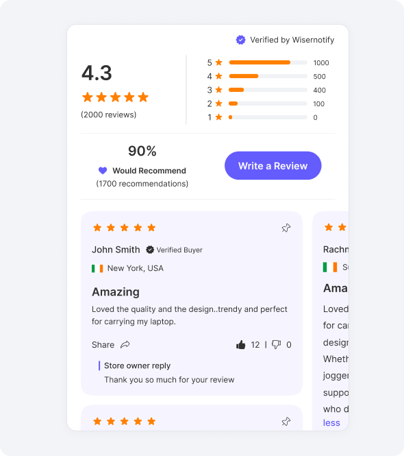 Show both shop and product reviews to highlight your brand’s quality and trust.