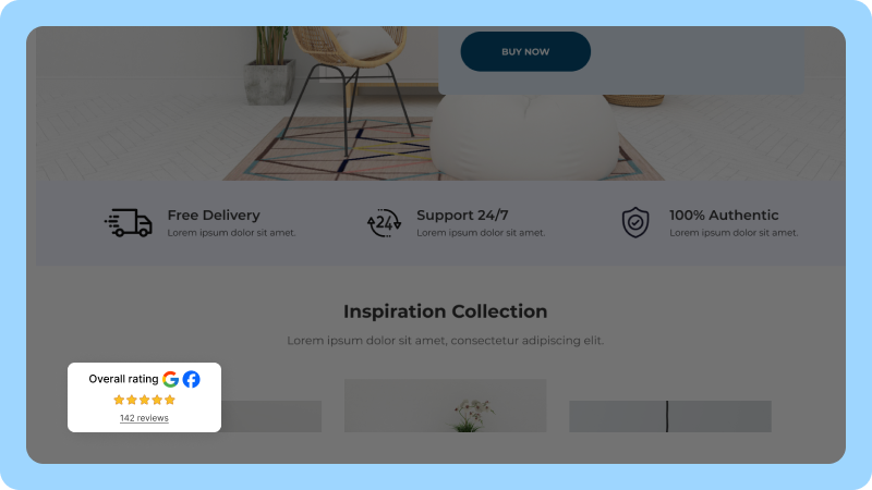 Highlight star ratings and reviews with a sleek, scrollable badge to build trust instantly.