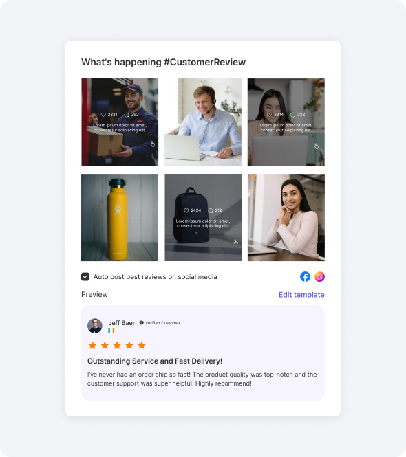 Automatically collect photo, video, or text reviews after delivery, no manual follow-ups, no setup, just social proof on autopilot.