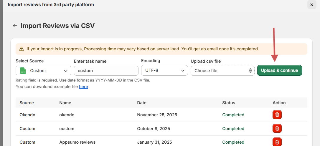 Note:- To display specific reviews under individual products on your website, make sure to include a Product ID or Product Handle column in your CSV file for product reviews. This connects each review to the correct product, especially if you’re using custom product pages or ecommerce widgets in WiserReview.
