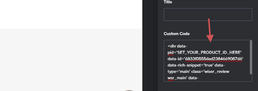 Search for the Custom Code or HTML section option and select Add. In the custom code field in the sidebar, paste the WiserReview embed code you copied in Step 4.