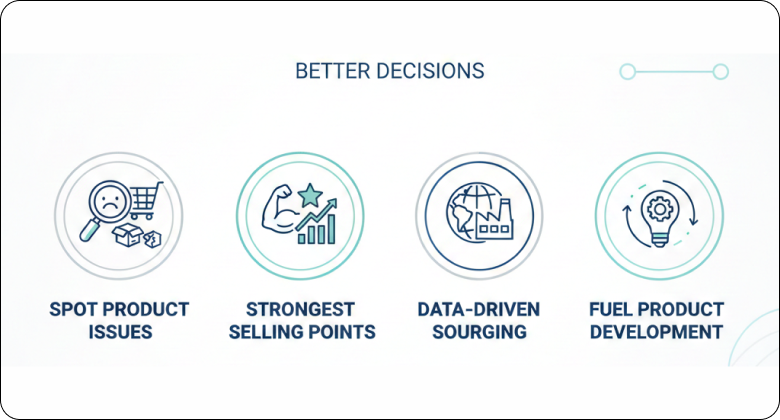 If negative sentiment repeatedly points to the same issue across a product line (inconsistent stitching, fragile packaging), you have evidence to bring to your supplier or to adjust your quality control process.