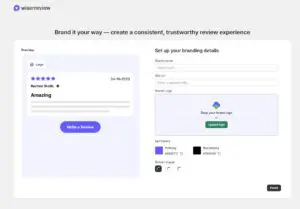 Set up your WiserReview dashboard, enter your email, create a password, and verify your account.
