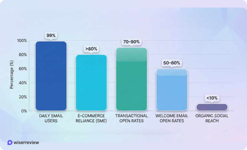 3. Email reaches more customers than any single social platform about 99% of users check email daily, while organic social reach often falls below 10%