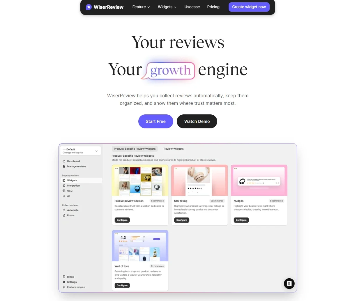 WiserReview helps you collect, manage, and display reviews without high costs.