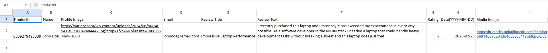 Make sure each review in your file has these: