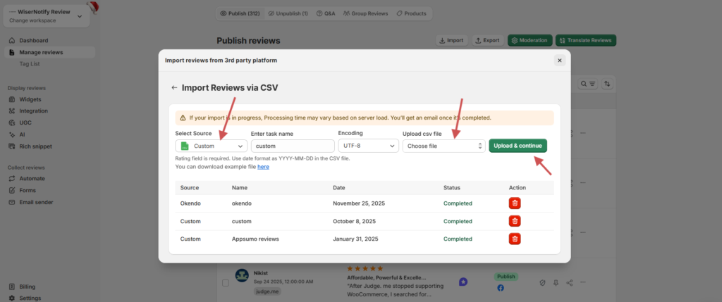 Steps to import reviews using WiserReview