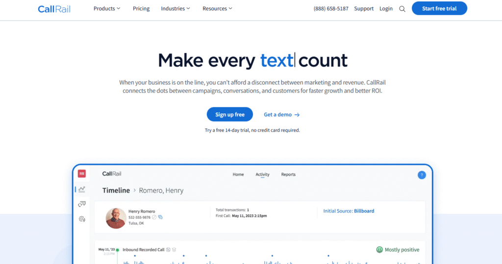 CallRail is a call tracking and analytics tool that helps businesses understand which marketing efforts bring in phone leads.