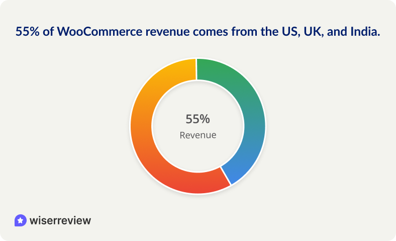 55% of WooCommerce revenue comes from the US, UK, and India.
