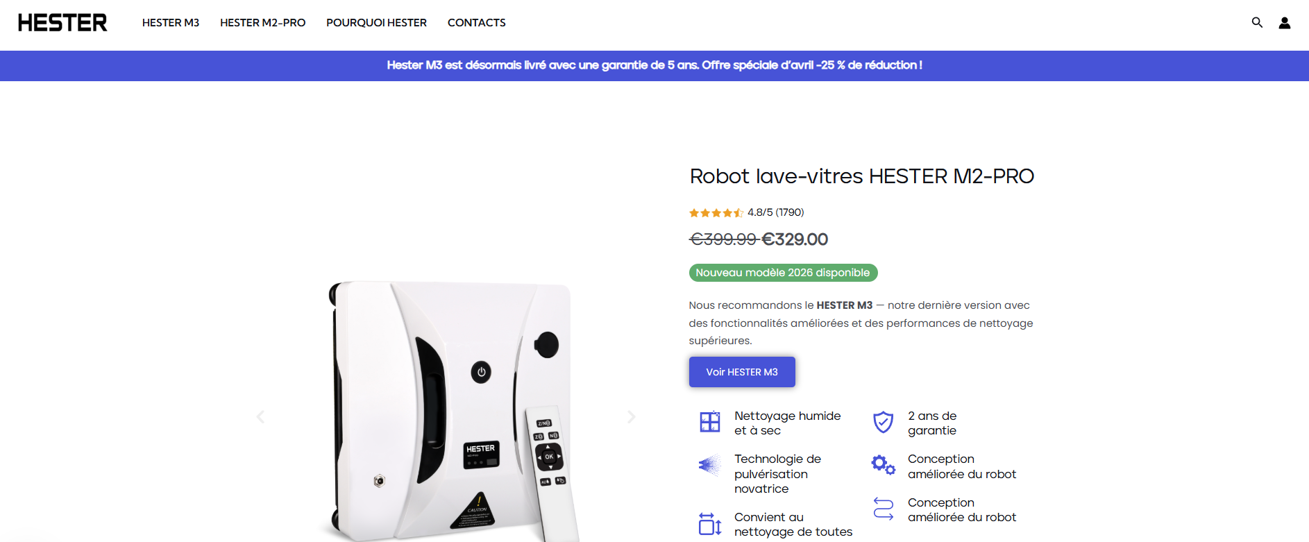 Star rating under the product title and the full review section below, shown on every Hester country store. The same verified review appears on hesterpro.com, hester.fr, hesterpro.de, and every other Hester country site, localized for each country's language and currency. Premium House never sees these reviews.