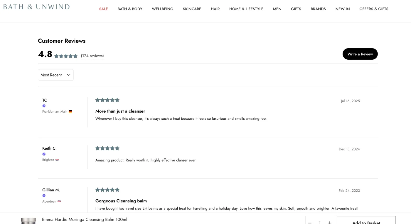 Beauty shoppers often read several reviews before trying a new skincare or haircare product. Reviews weren't just a feature for Bath & Unwind. They were the single most important trust signal on every product page.