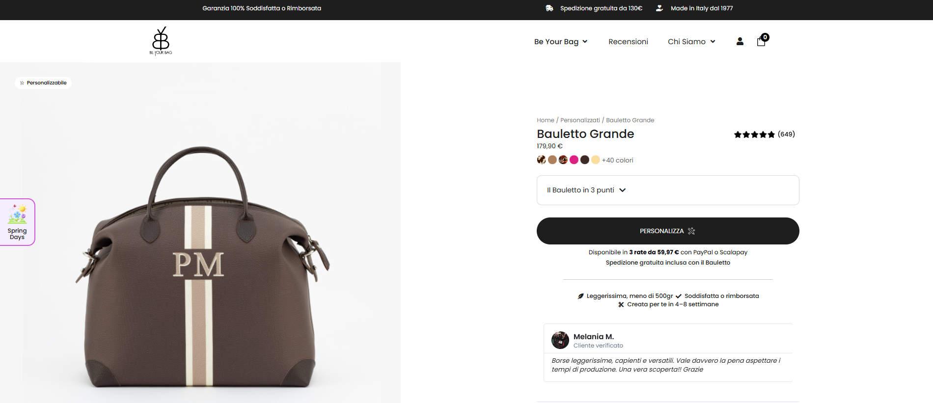 Be Your Bag previously used Judge.me. They switched to WiserReview to bring 5,000+ existing Italian reviews onto WooCommerce without losing history, get photo reviews on every customisable PDP, and push verified star ratings into Google Shopping.