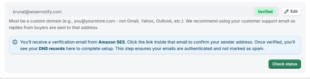 After verification, WiserReview will send all review invitation emails using the verified store email address.
