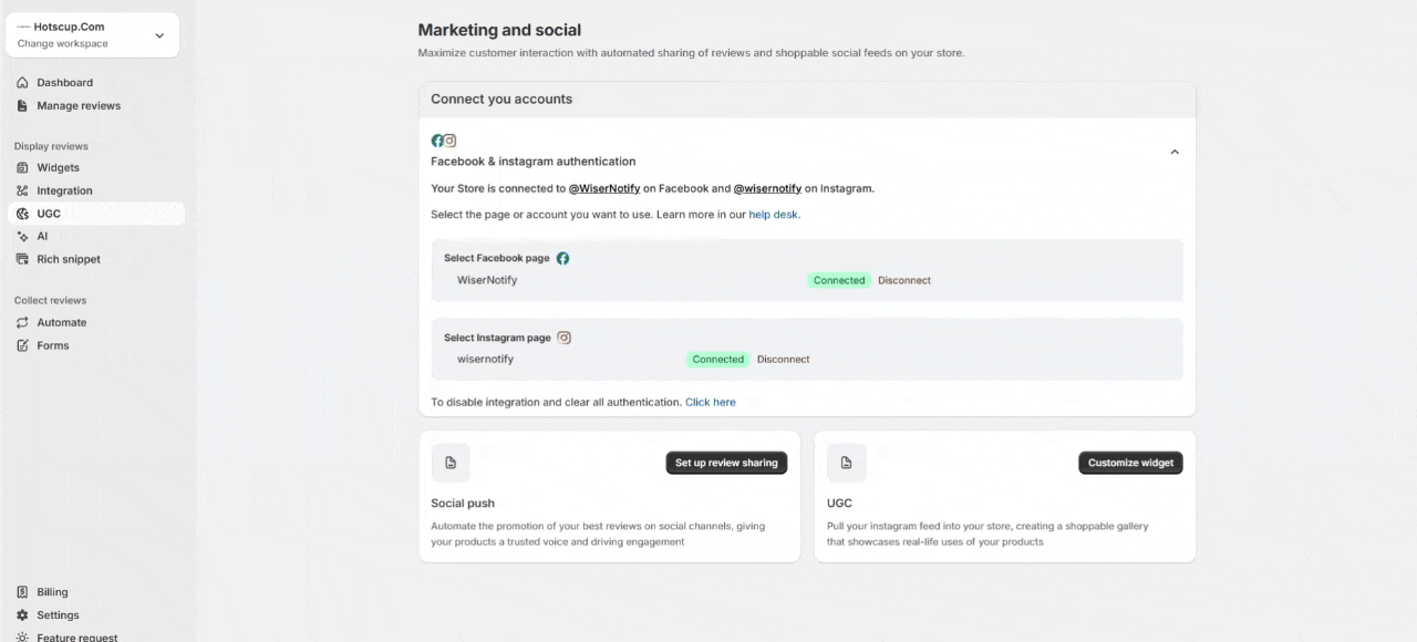 • From your WiserReview dashboard, go to the UGC tab in the left sidebar.