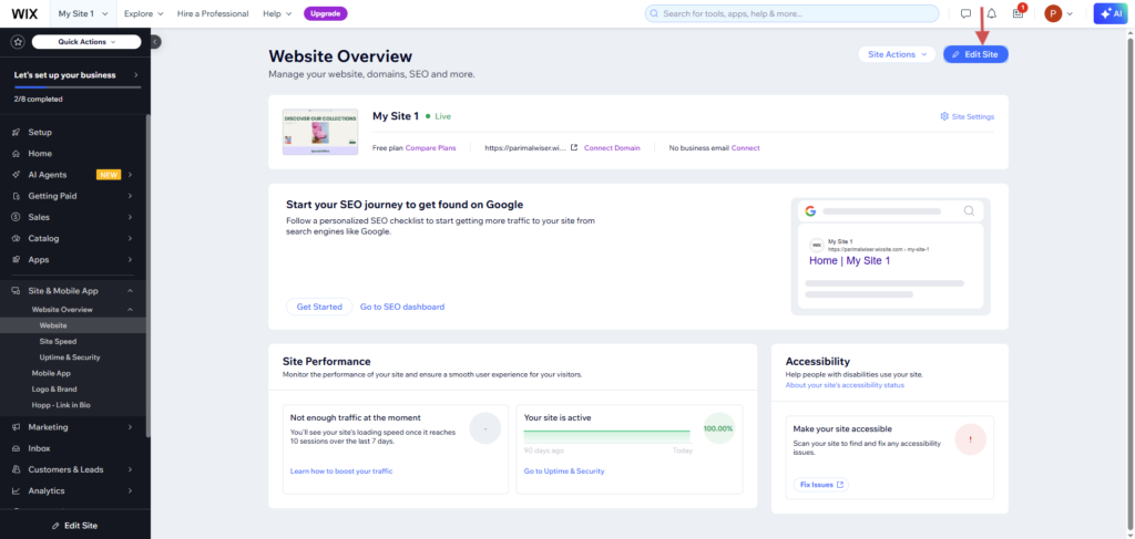 - Go to Site & mobile app -> Website overview -> Website -> Edit site.