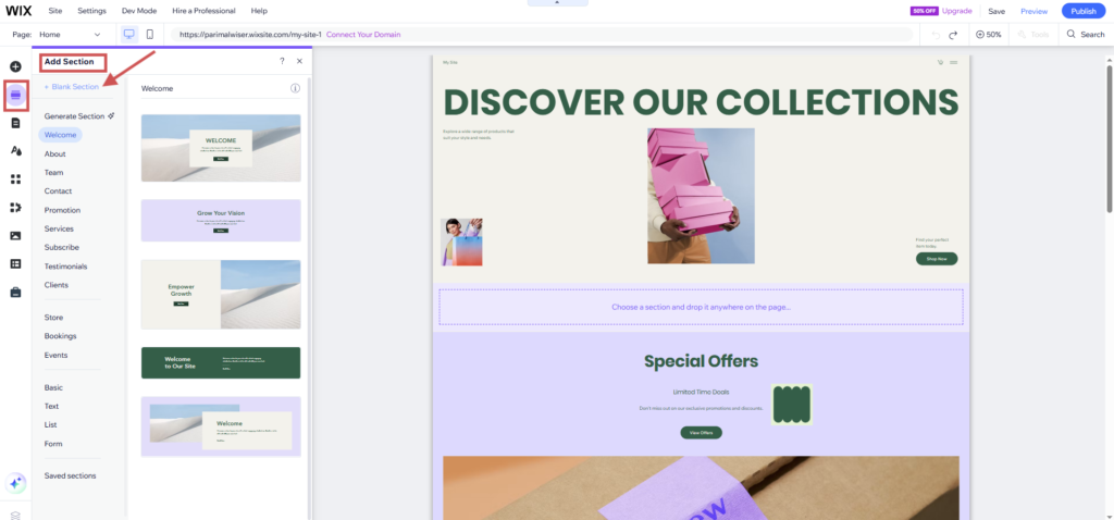 - Add a blank section.