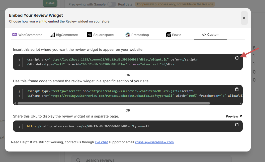 Step 2: Customize WiserReview Widget Design and Settings
