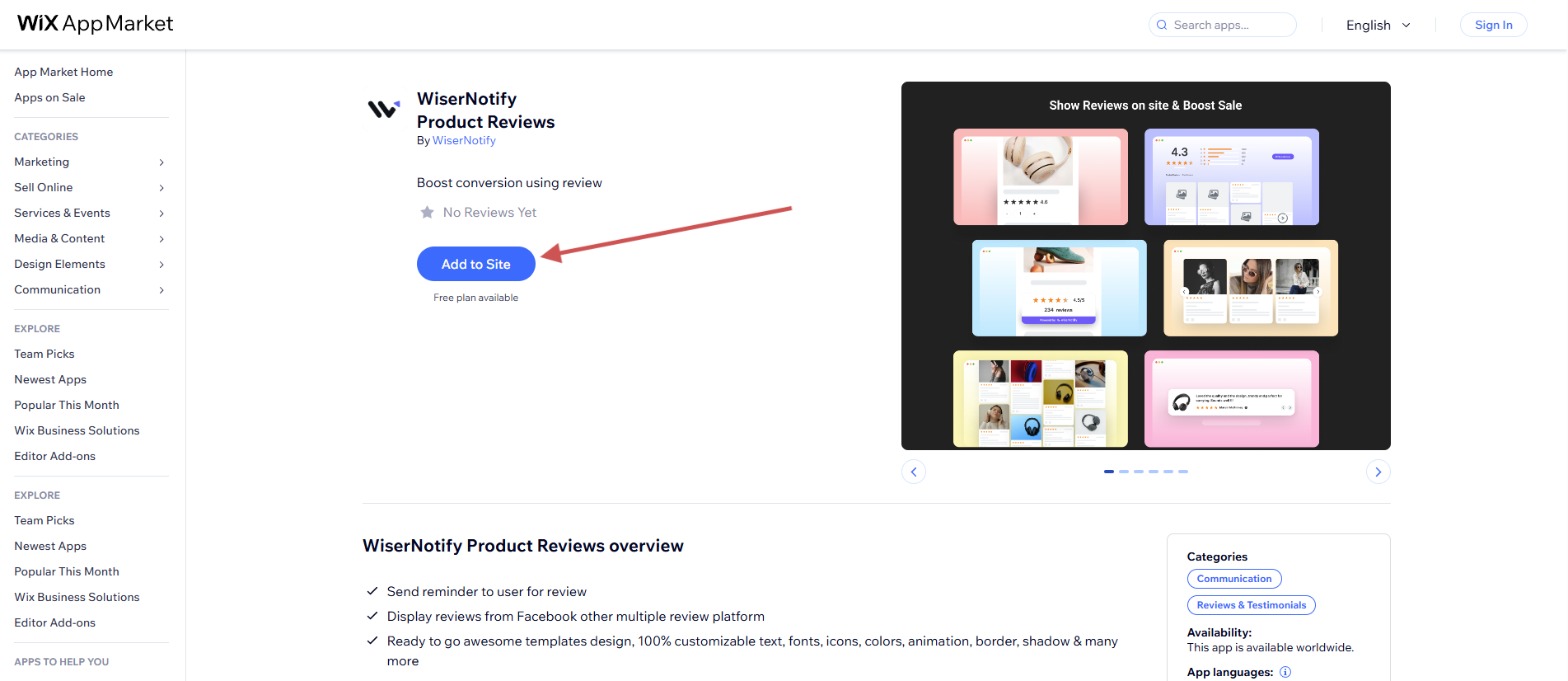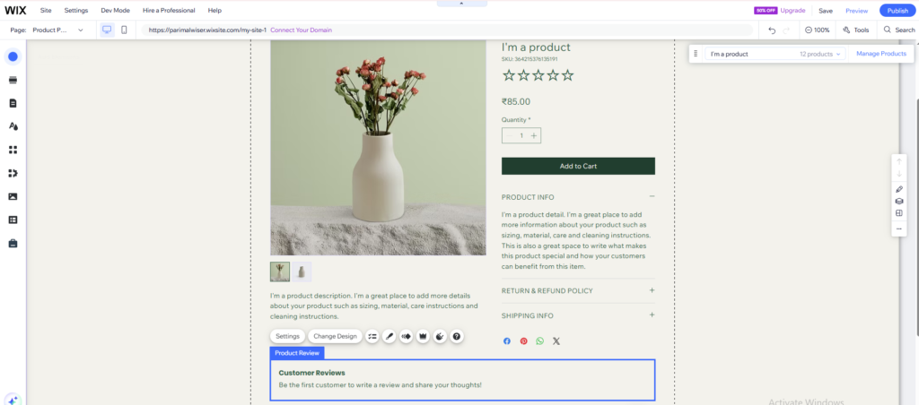 - Then WiserNotify is automatically added to your Wix Store. (Only Star rating and product review section)