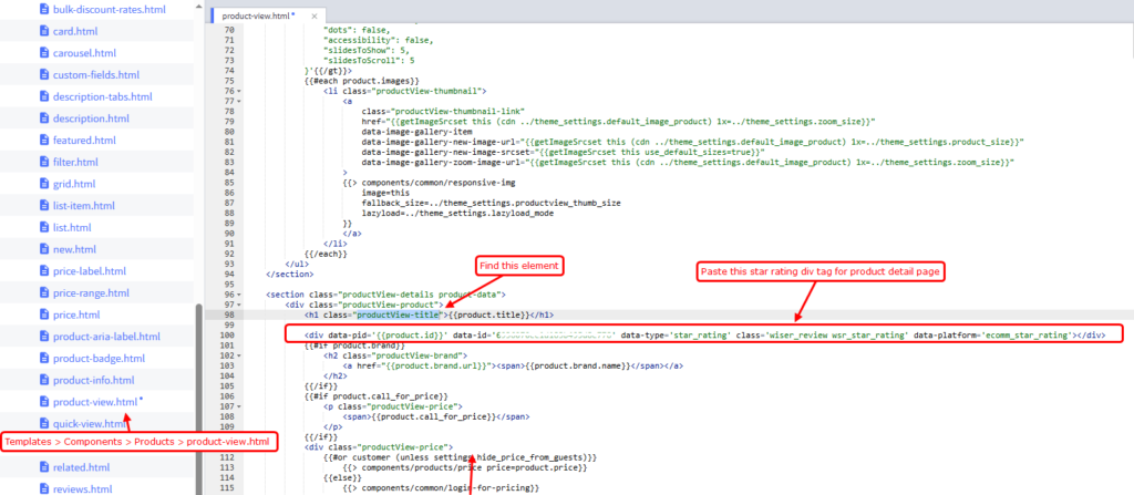 • Click Templates > Components > Products > product-view.html or single-details.html.