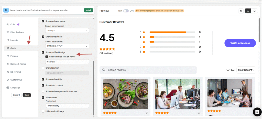 This feature is available across all review widgets, cards, and popups in WiserReview.
