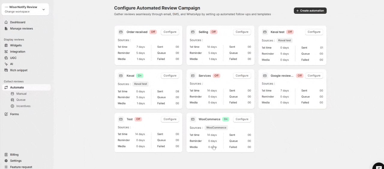 1. Navigate to “Automate” under “Collect Reviews” in your dashboard.