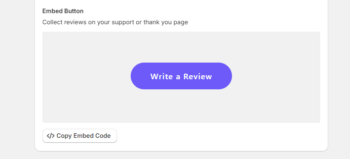 - You can embed a review button on your website, support page, or thank you page. This button, when clicked, will take customers directly to the review form.