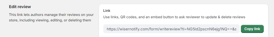 - You can generate a direct link that lets authors manage their reviews. This link can be shared through various channels such as chat, support emails, account pages, and product packaging.