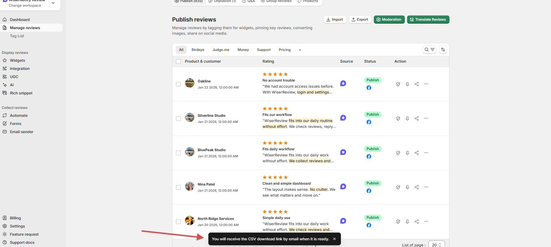 Export Reviews from WiserReview