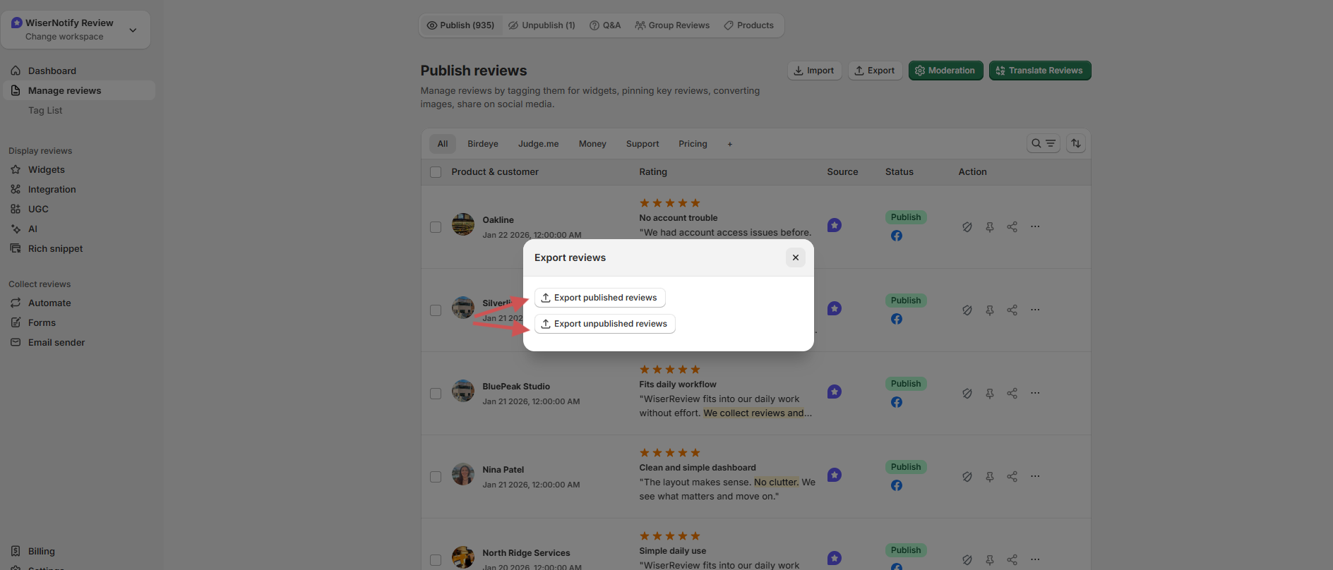 This guide explains how to export reviews from WiserReview in a few clear steps.