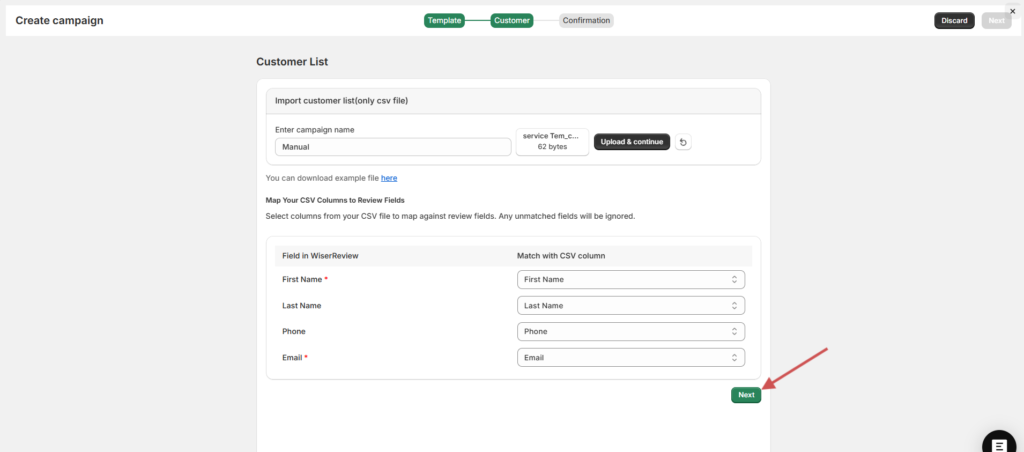 Step 4: Upload Your Customer CSV File