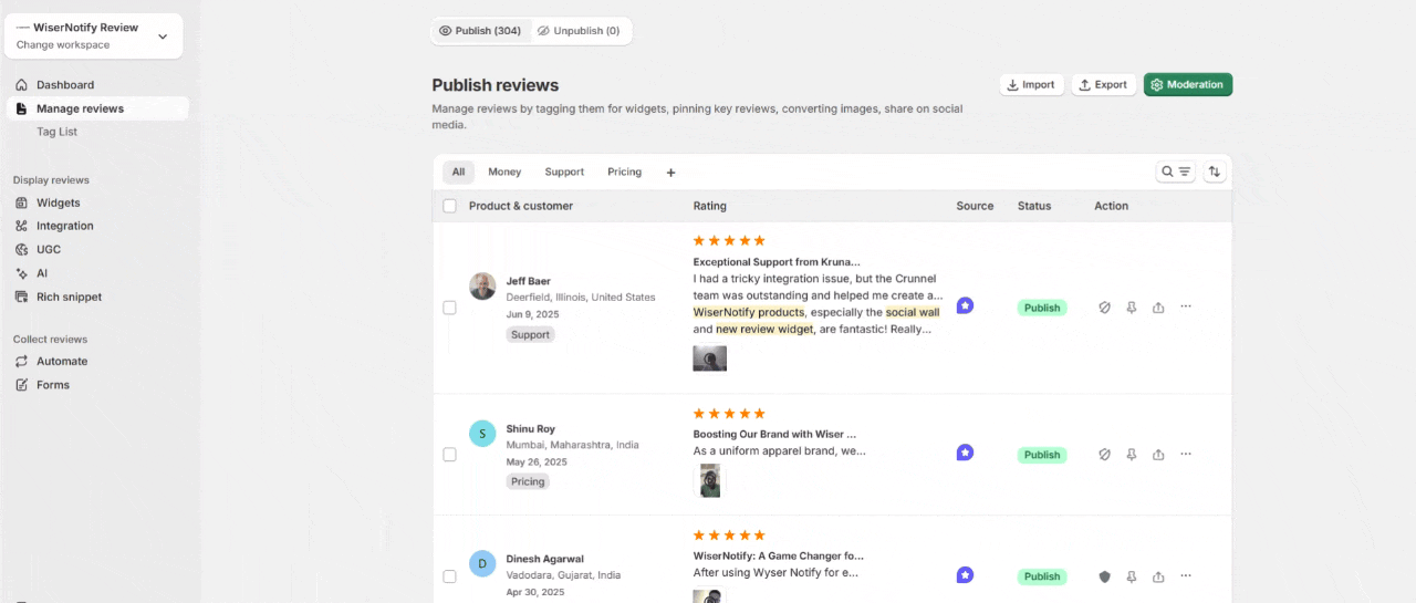 You can easily migrate your Judge.me reviews (including text, images, videos, verified badge ) into WiserReview using the Import Reviews module. Here’s how to do it in 3 simple steps: