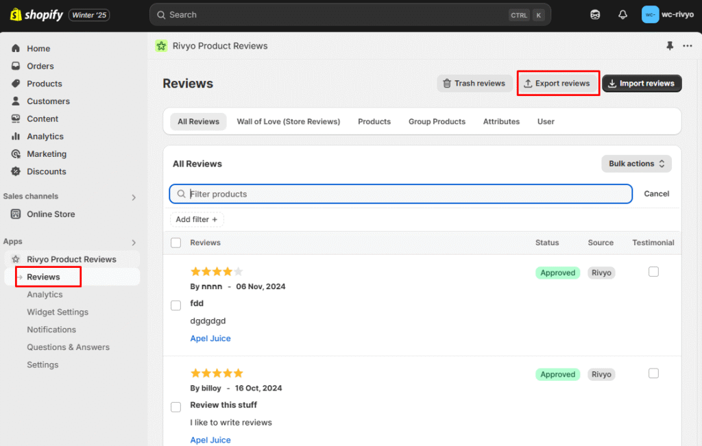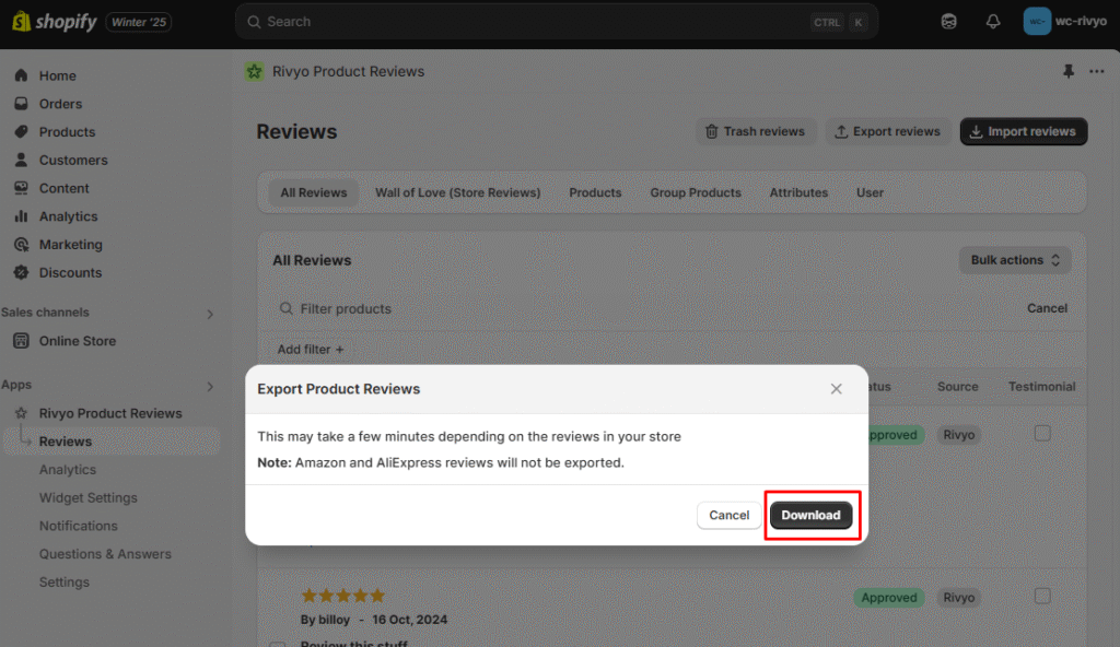 Step 1: Export Reviews from Rivyo