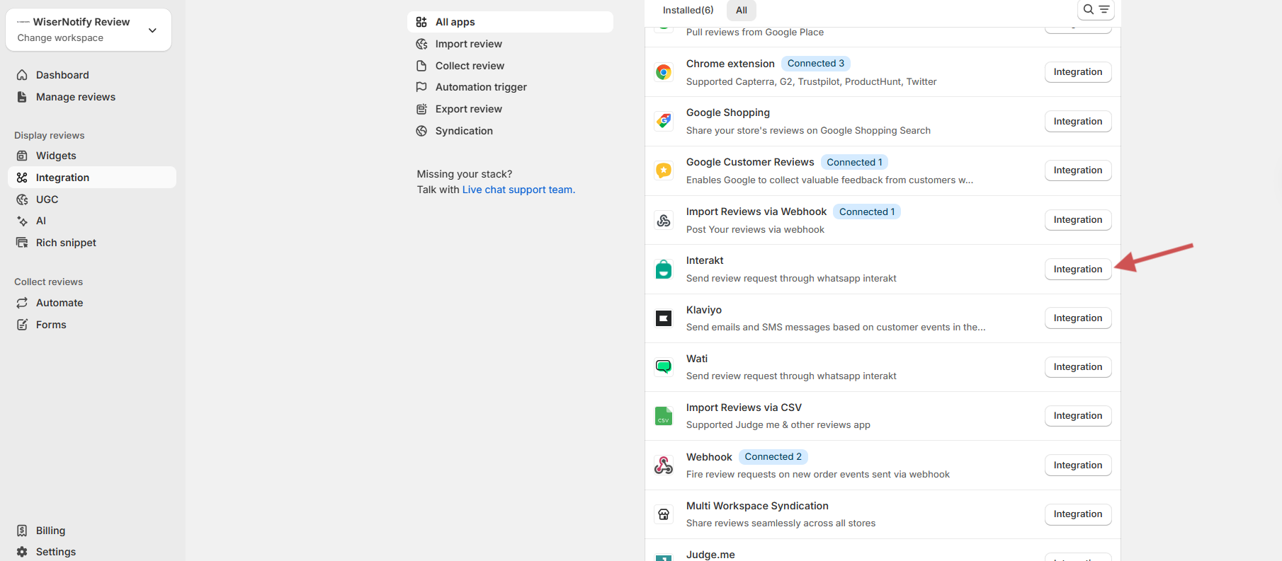 Paste this Secret Key in WiserReview Interakt integration popup and click on create button.