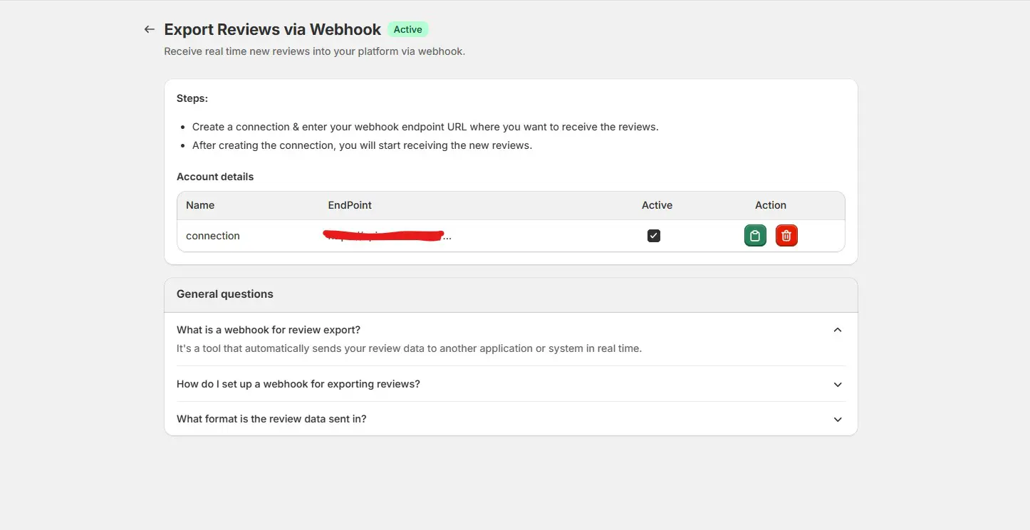 - Endpoint URL – where you want reviews to be sent (e.g., Zapier Webhook, API endpoint).