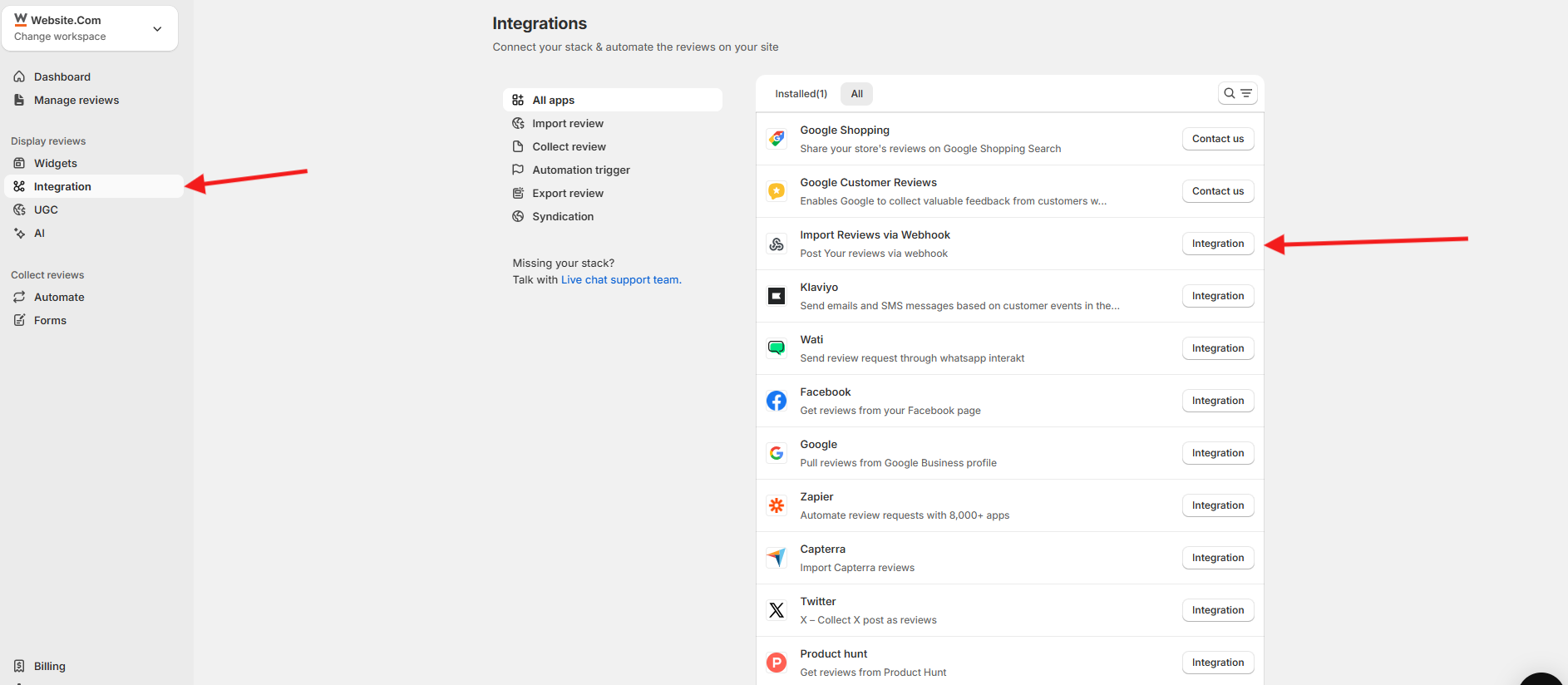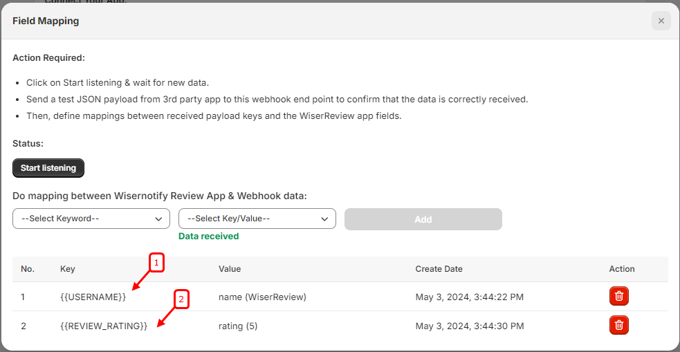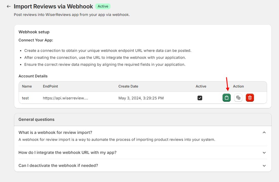 Import Reviews via Webhook in WiserReview