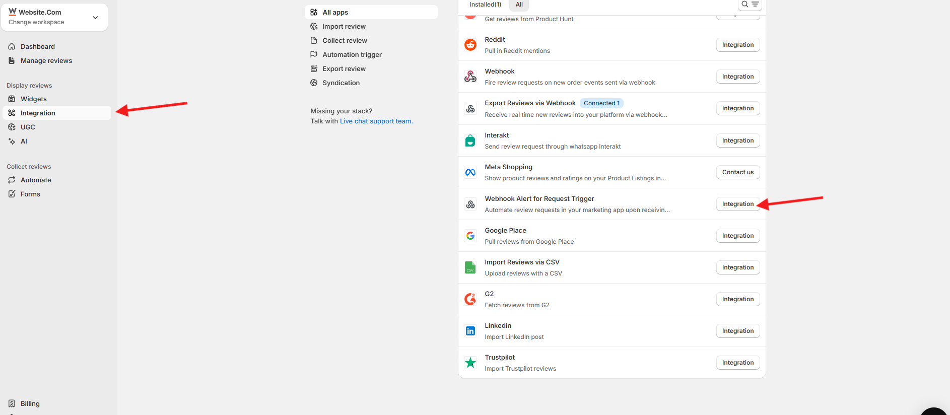 Add remark and provide an endpoint URL for receiving data from WiserReview and click on create button.
