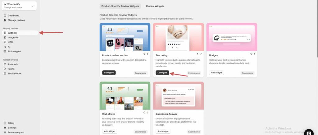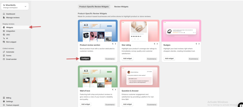 Go to Widgets in the WiserReview dashboard.