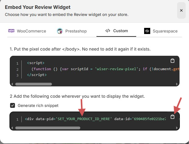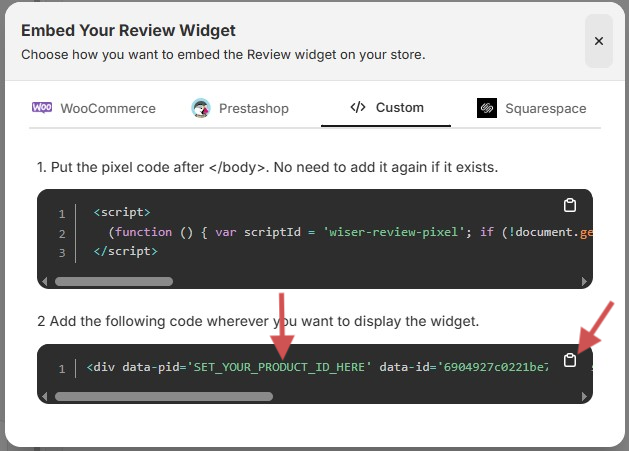 This guide explains how to set up WiserReview on your custom ecommerce store.