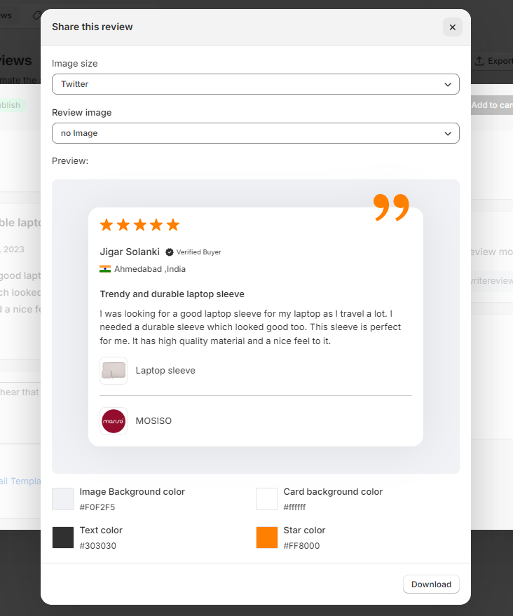 - Boost your credibility by showcasing star ratings, user details, and product images.