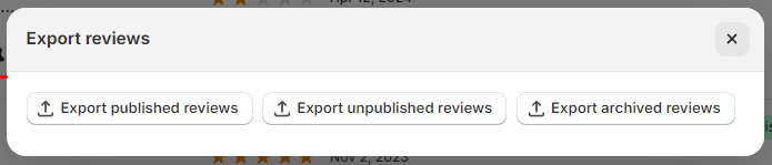 - This feature supports exporting published, unpublished, and archived reviews for various purposes such as backup, reporting, or analysis.