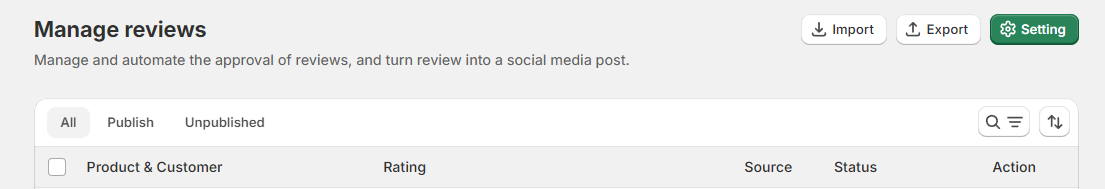 4. Publish/Unpublish: Toggle the review’s visibility on your platform by clicking the “Publish” or “Unpublish” button.