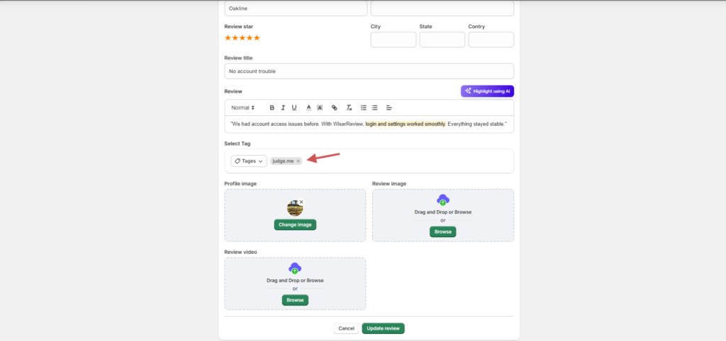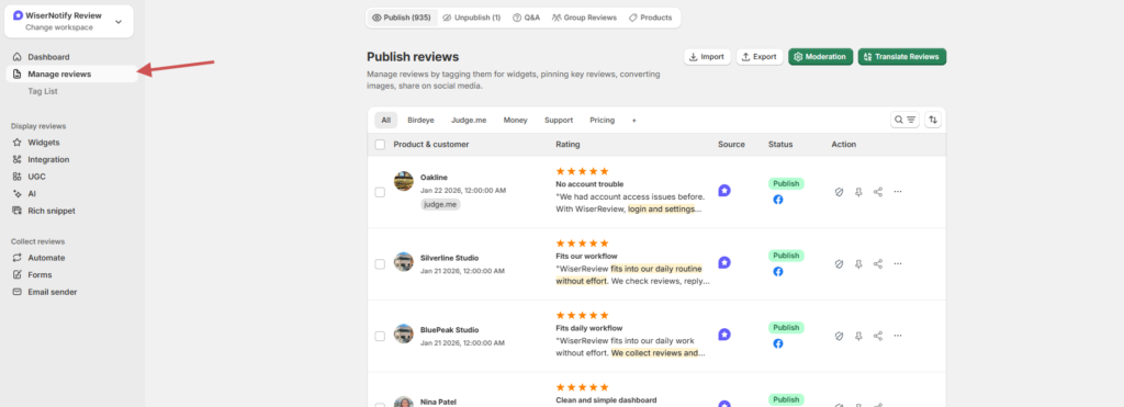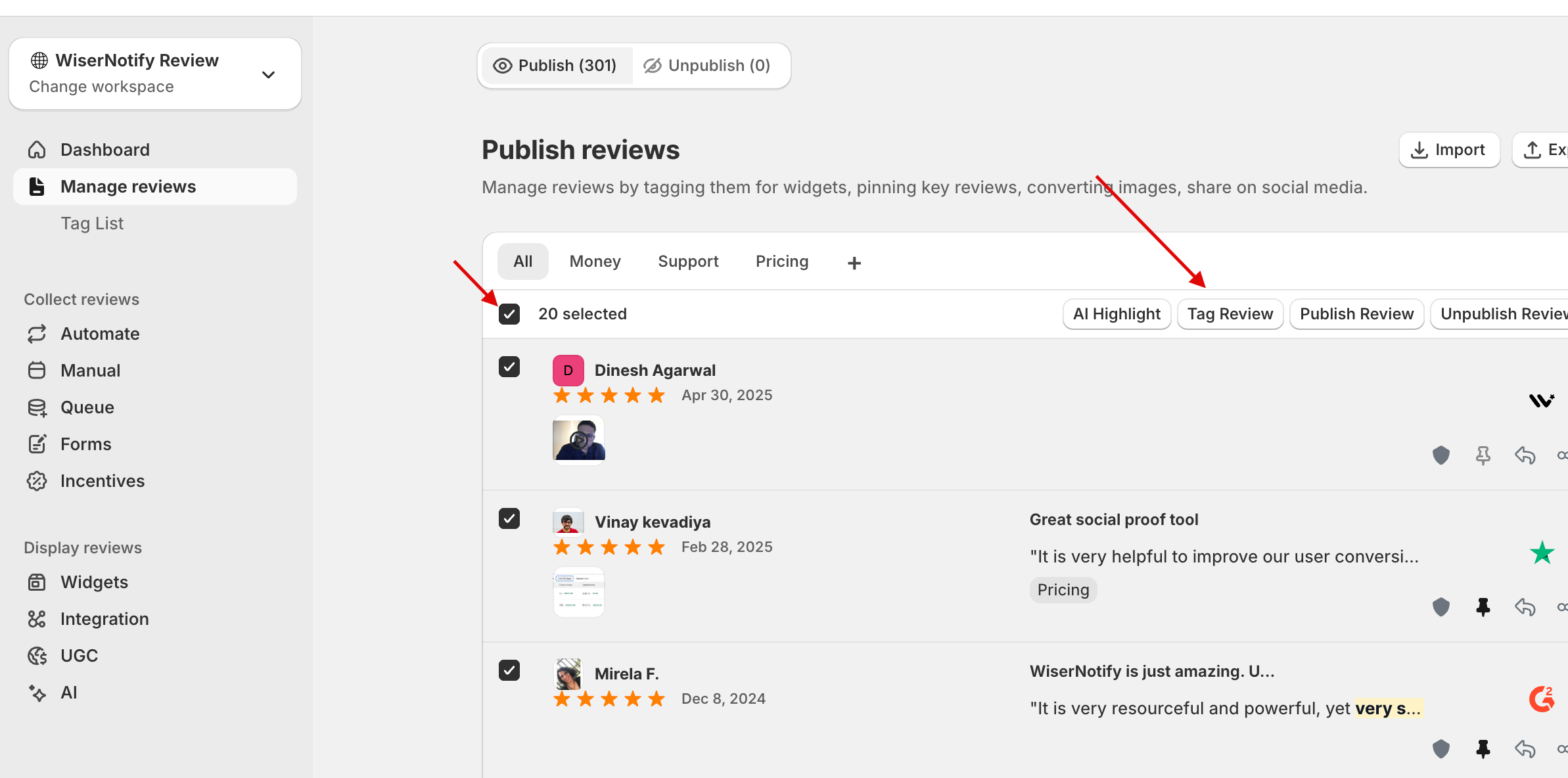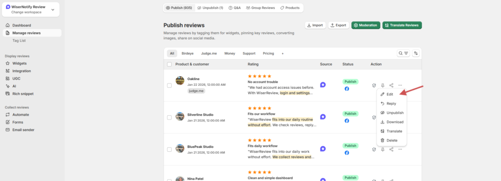Manage Reviews – Manually tag each review