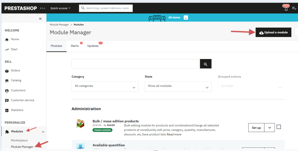 In your PrestaShop Admin, go to Modules > Module Manager.