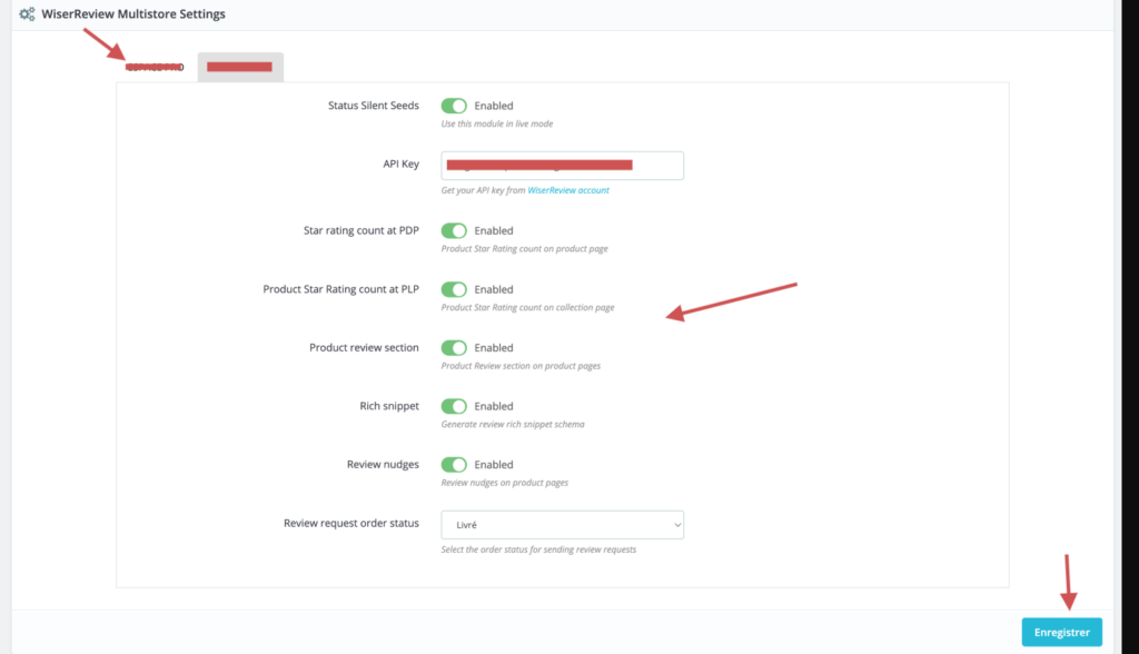 Enabled. - This ensures WiserReview features are active on your storefront.