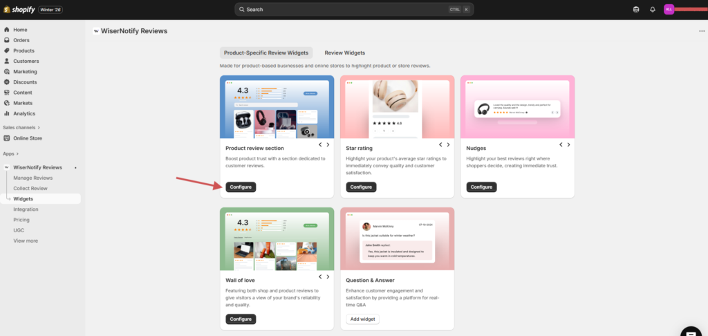 Add review widgets to your Shopify pages to showcase customer feedback.