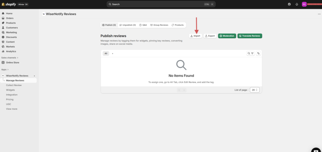 If you already have reviews from platforms like Judge.me, you can import them into WiserReview.