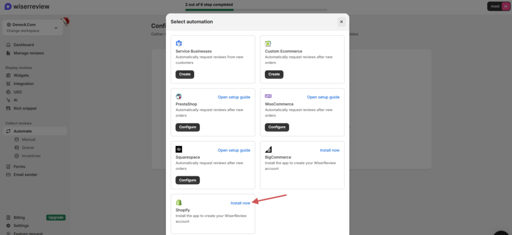 4. Once connected, WiserReview will automatically start collecting reviews from store orders.